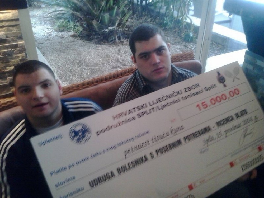 Hrvatski liječnički zbor - sport - podružnica Split uručili su donaciju od 15 000 kuna Udruzi osoba s posebnim potrebama Vincenca Blato. "Svaki naš teniski turnir koji već dvadeset i jednu godinu održavamo krajem rujna jednim je dijelom i humanitarnog karaktera" kazao je prof.dr.sc. Ante Punda, predsjednik organizacijskog odbora liječnika tenisača.